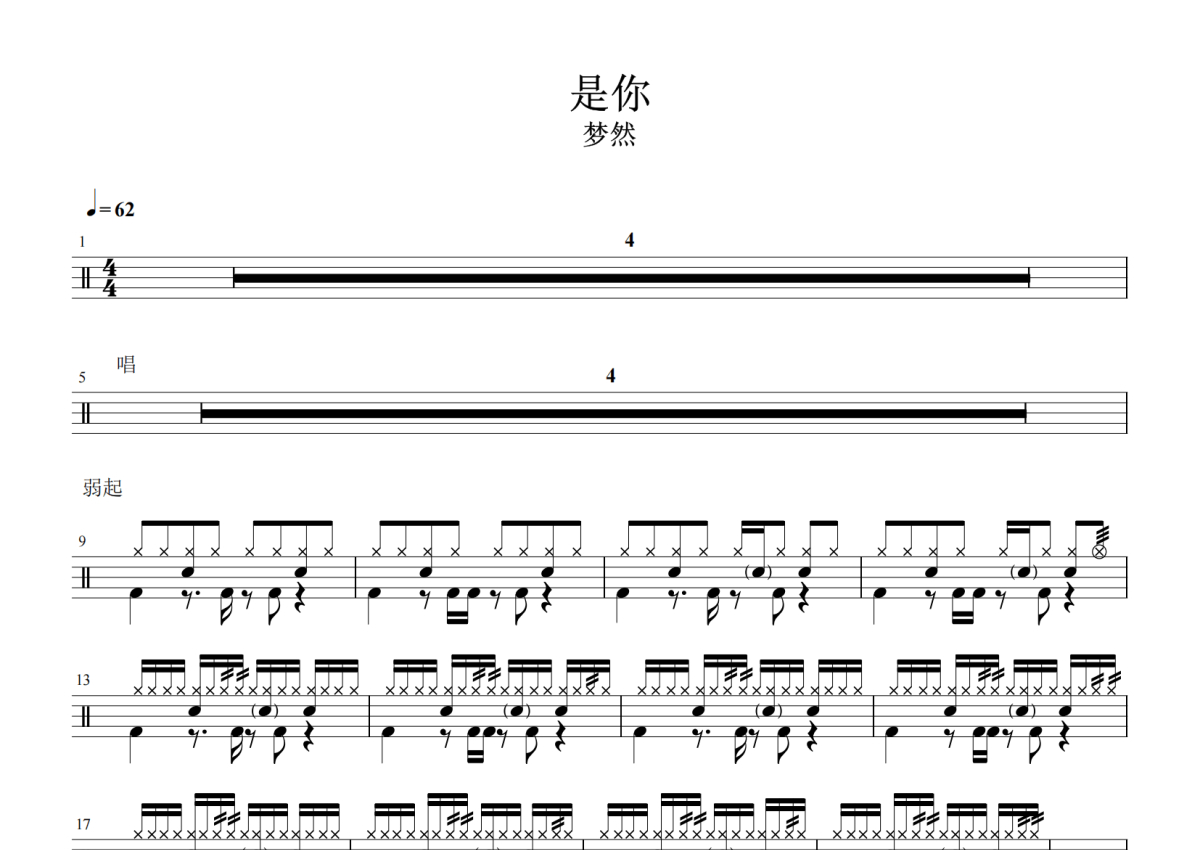 是你架子鼓谱 - 梦然演唱