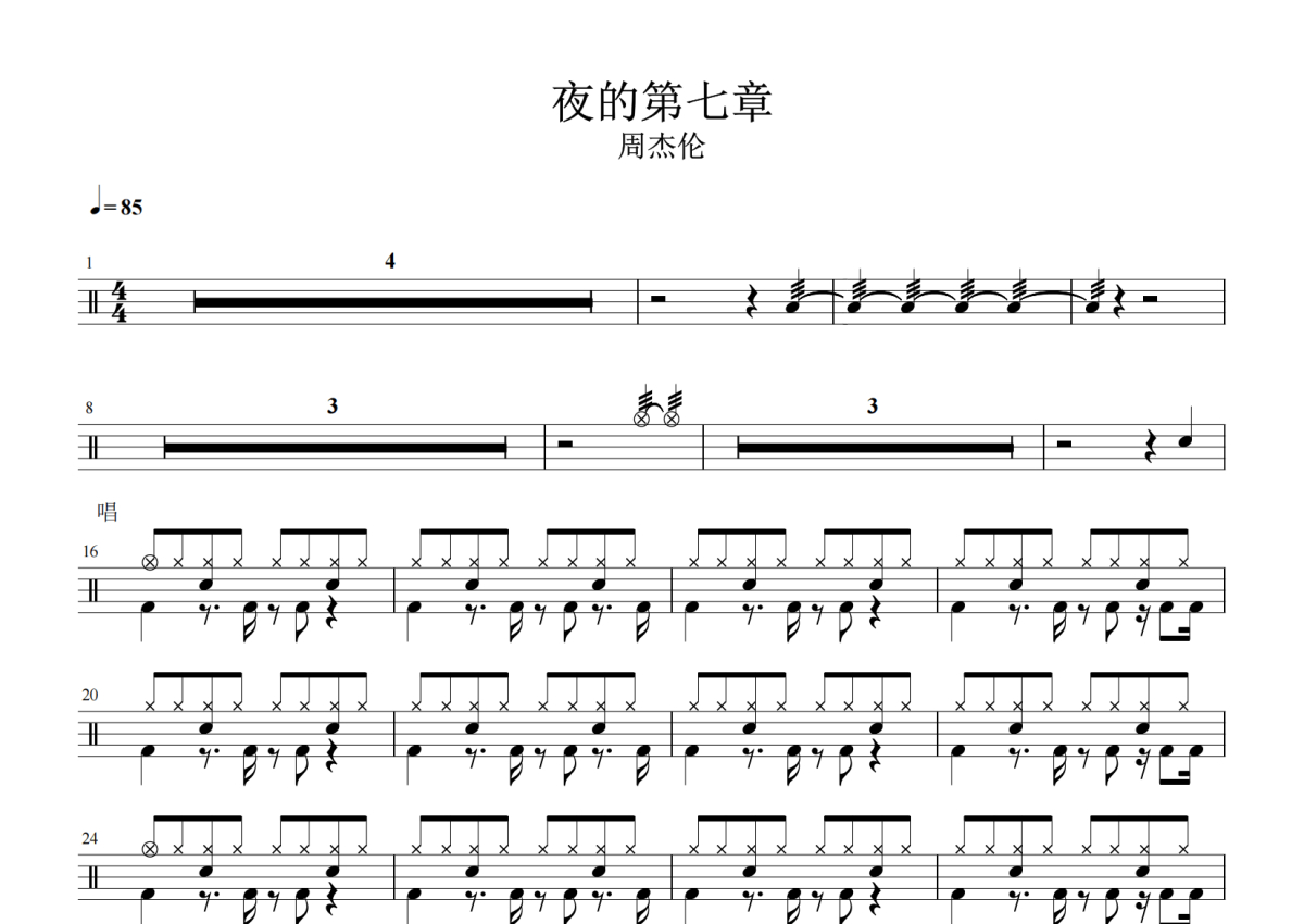 夜的第七章架子鼓谱 - 周杰伦演唱