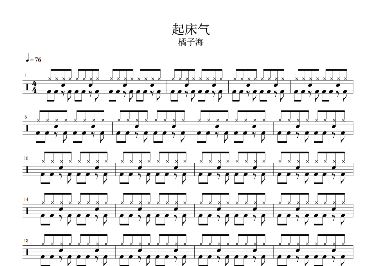 橘子海《起床气》架子鼓谱