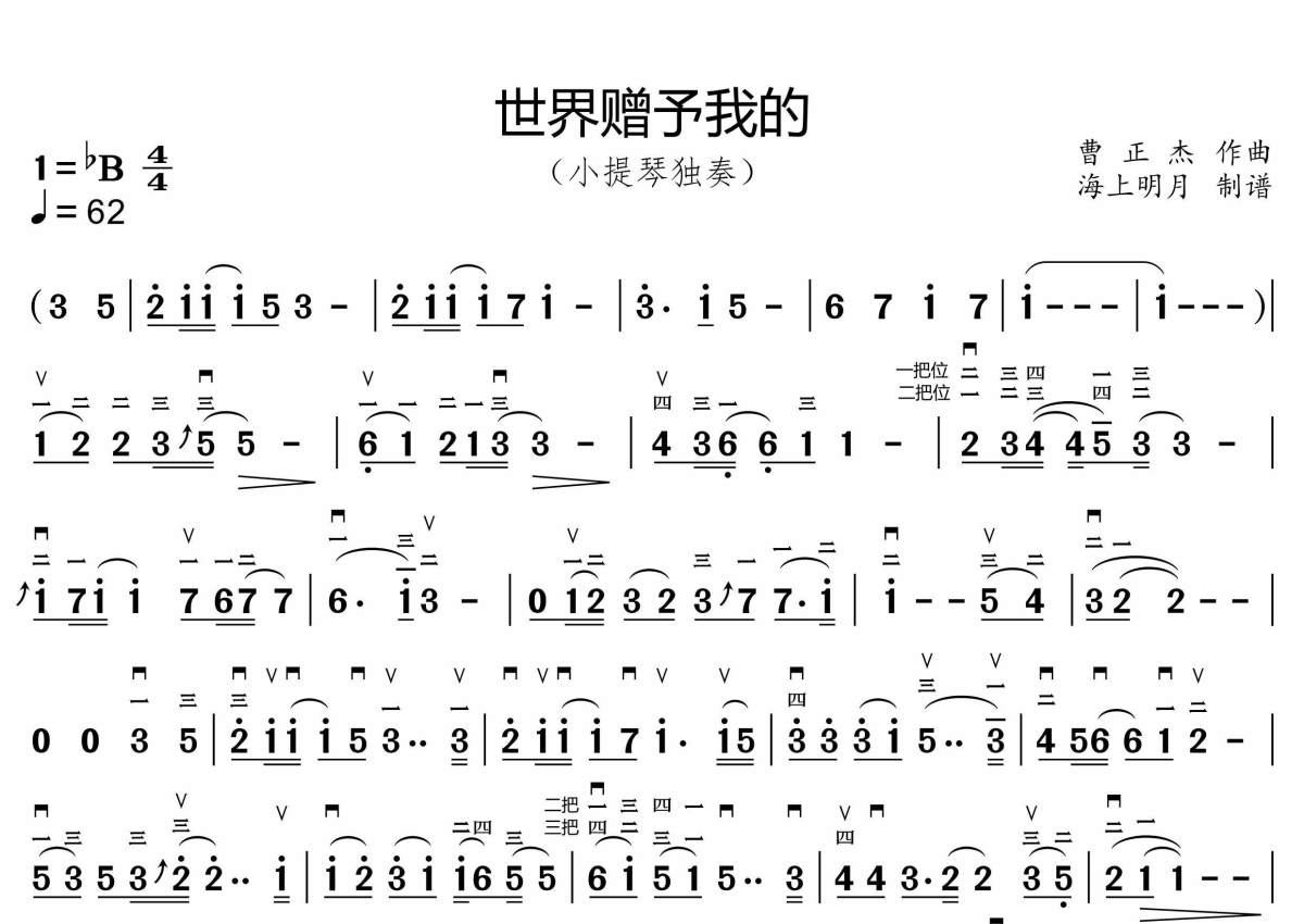 《世界赠予我的》是王菲演唱的一首歌曲,简谱,拍号为4/4拍,这份小提琴谱共有一张高清图谱,图谱由 @海上明月 编配上传。