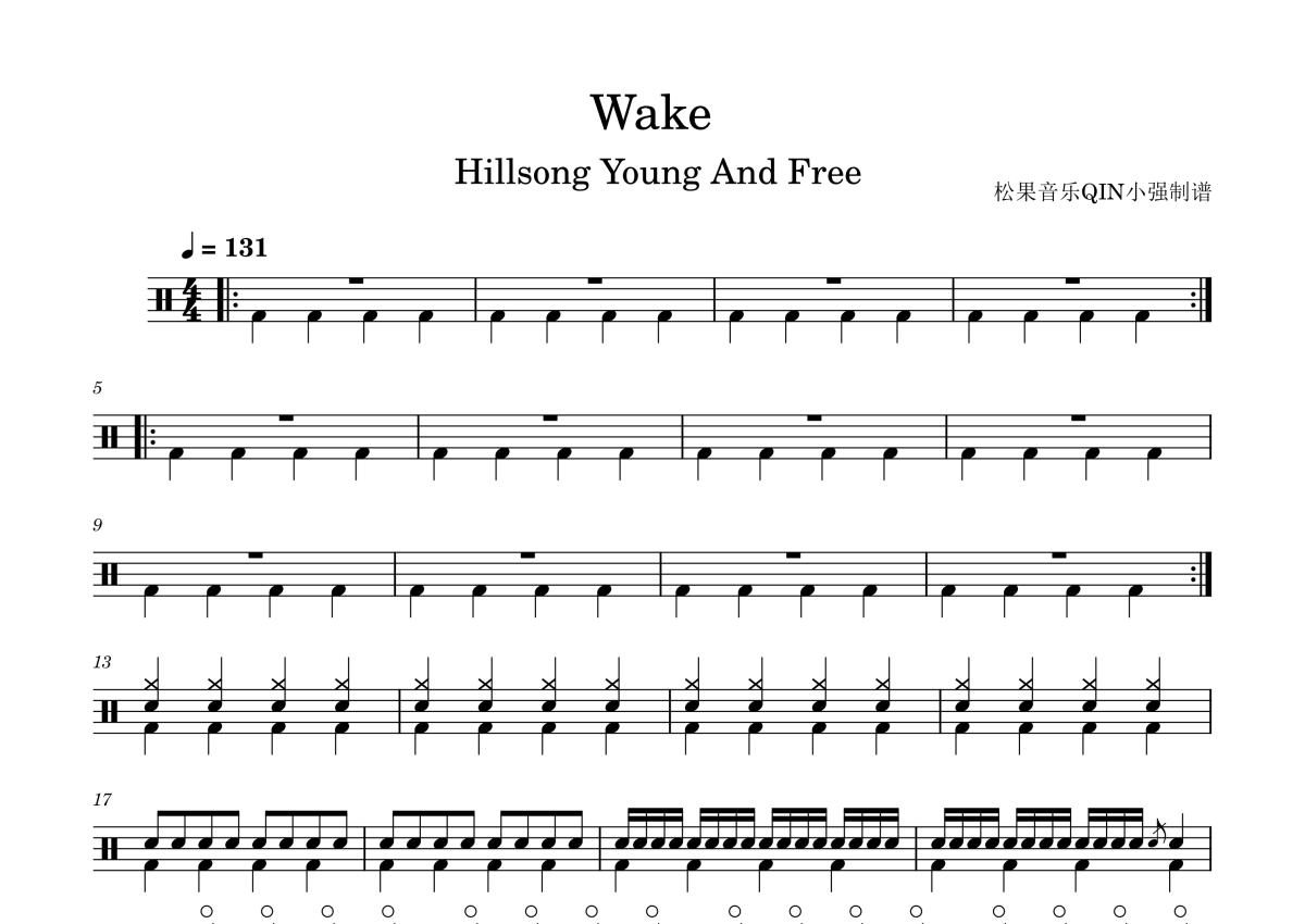 hillsong young and free《wake》架子鼓谱