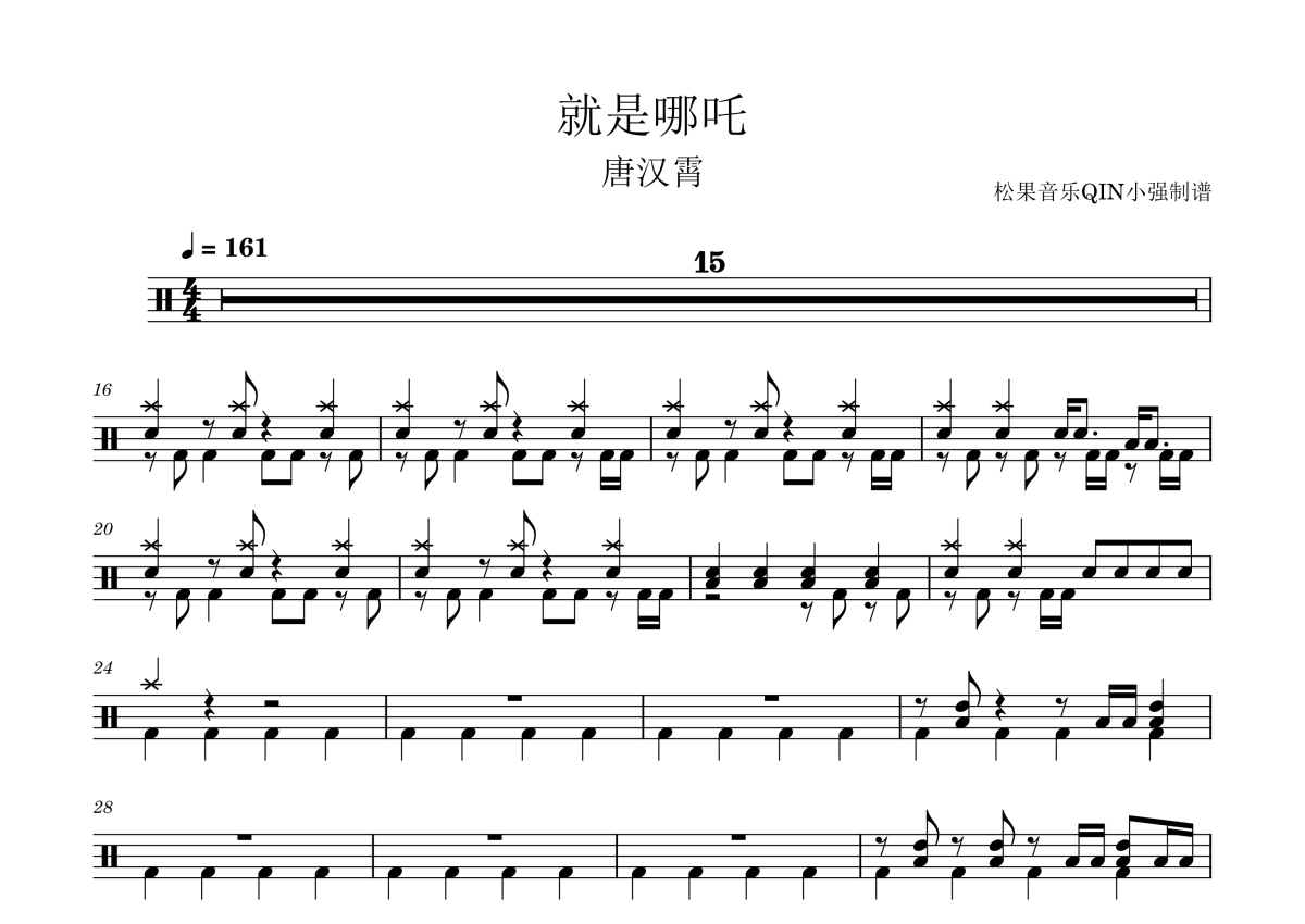 《就是哪吒》是唐汉霄演唱的一首歌曲,拍号为4/4拍,这份架子鼓谱共有三张高清图谱,图谱由 @松果音乐QIN小强 编配上传,图谱使用五线谱编配,使用这份就是哪吒架子鼓谱,你将能够轻松地敲打出这首唐汉霄的就是哪吒,快来尝试吧。《就是哪吒》是动画电影《哪吒之魔童闹海》的角色曲,由唐汉霄演唱并作词,王竞、唐汉霄、朱婧汐共同作曲,收录于同名专辑《就是哪吒》,该歌曲于2025年1月29日发行。