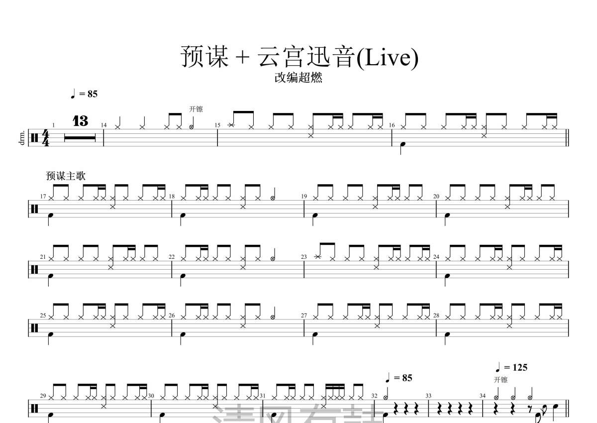 改编版《预谋+云宫迅音》架子鼓谱