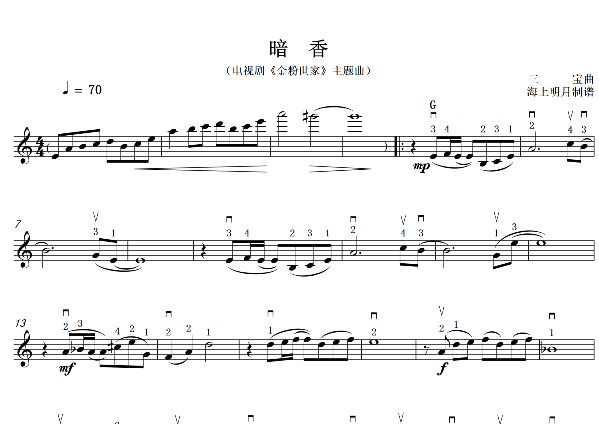 三宝《暗香》小提琴谱 - 五线谱+简谱