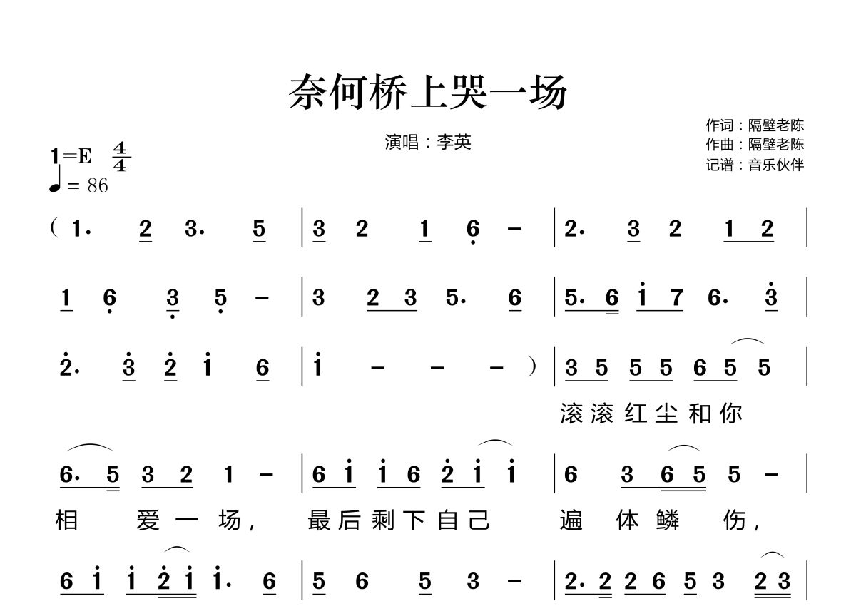 奈何桥上哭一场简谱 - 李英演唱
