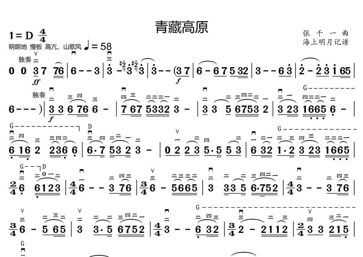 张千一《青藏高原》小提琴谱 - 简谱+五线谱