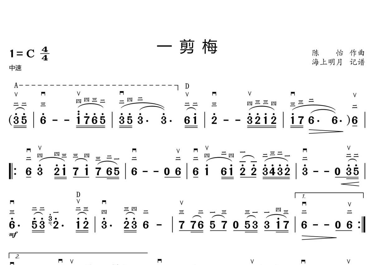 《一剪梅》是小提琴简谱演唱的一首歌曲,拍号为4/4拍,这份小提琴谱共有一张高清图谱,图谱由 @海上明月 编配上传。