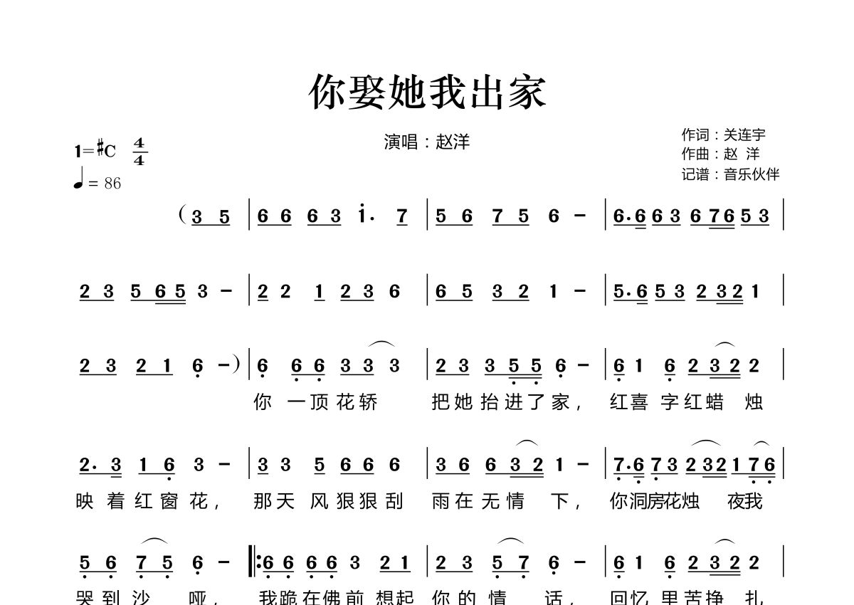 你娶她我出家简谱 - 赵洋演唱
