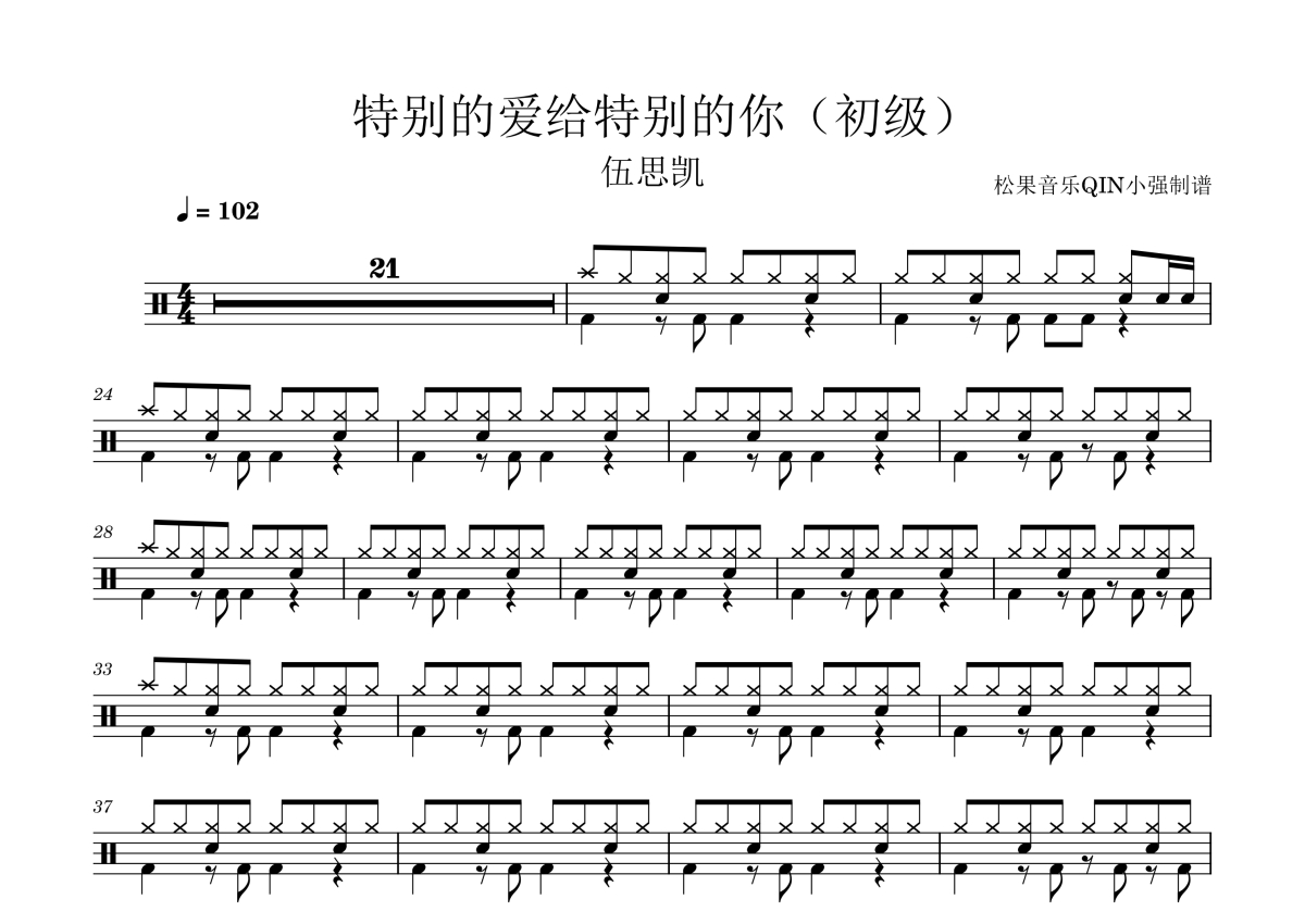 伍思凯《特别的爱给特别的你(初级)》架子鼓谱