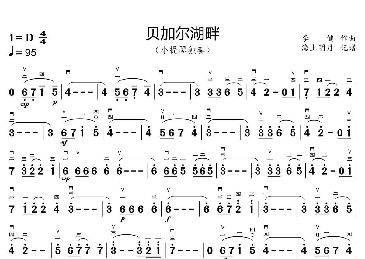 《贝加尔湖畔》是李键演唱的一首歌曲,简谱,这份小提琴谱共有一张高清图谱,图谱由 @海上明月 编配上传。