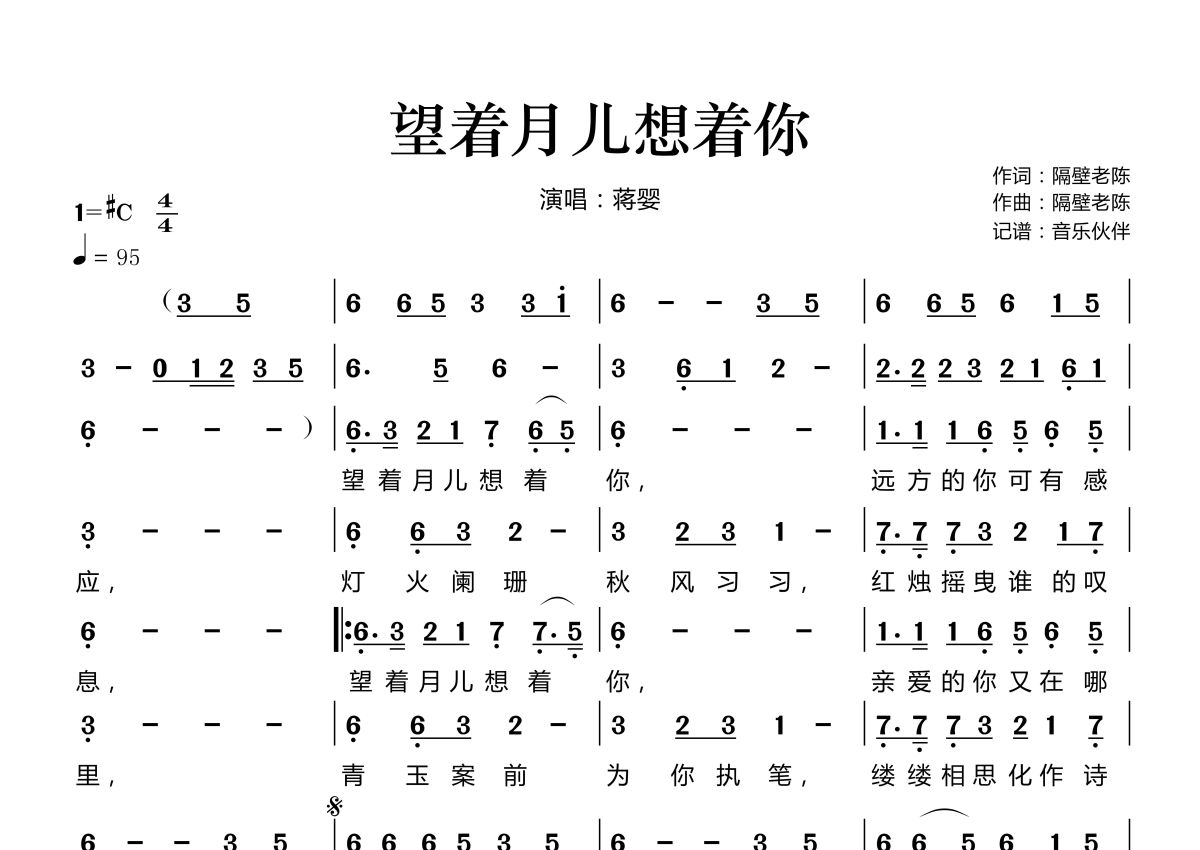 望着月儿想着你简谱 - 蒋婴演唱