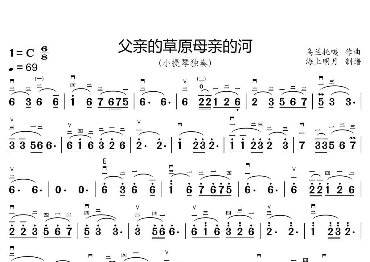 《父亲的草原母亲的河》是小提琴简谱演唱的一首歌曲,这份小提琴谱共有一张高清图谱,图谱由 @海上明月 编配上传。