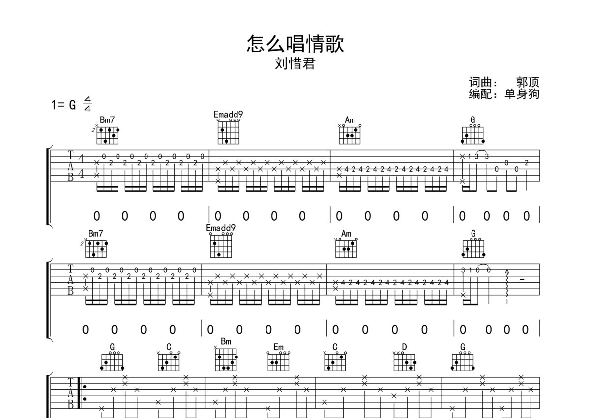 刘惜君《怎么唱情歌》吉他谱 - G调弹唱六线谱