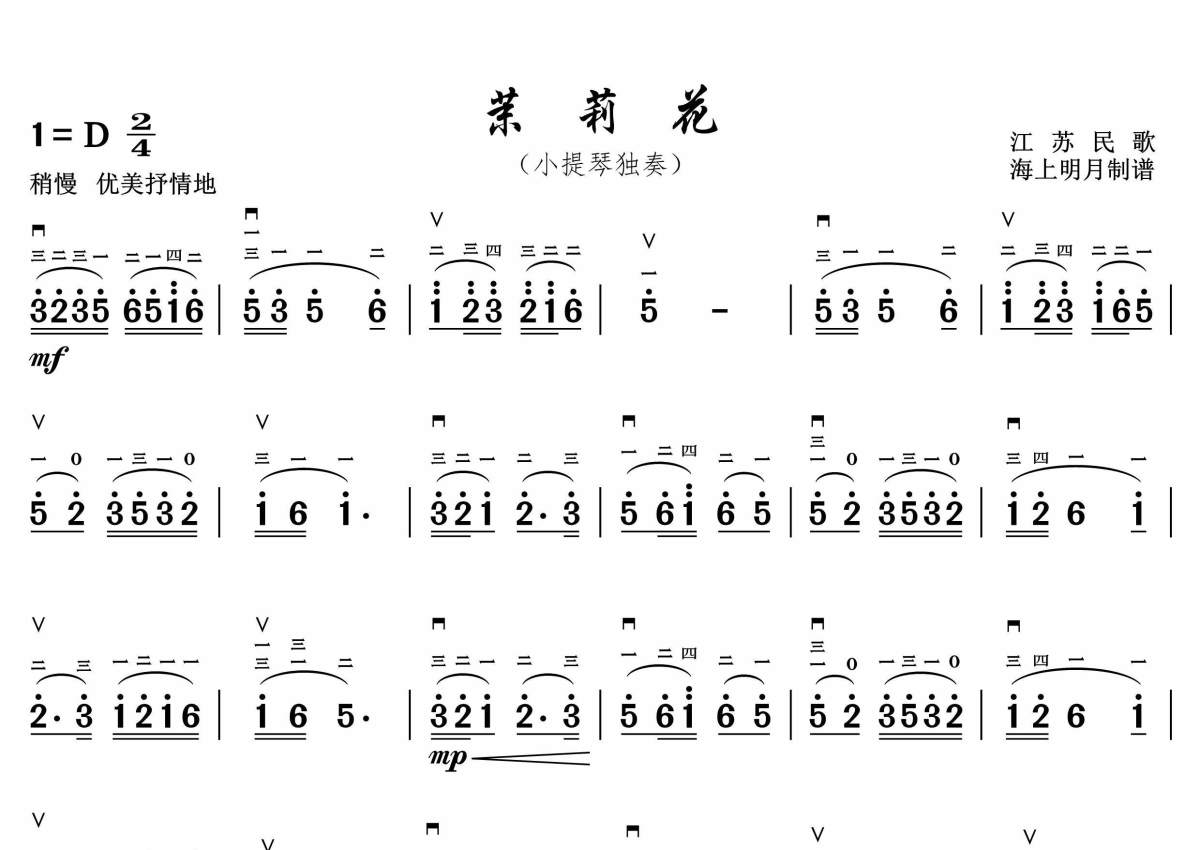 江苏民歌《茉莉花》小提琴谱 - 小提琴简谱