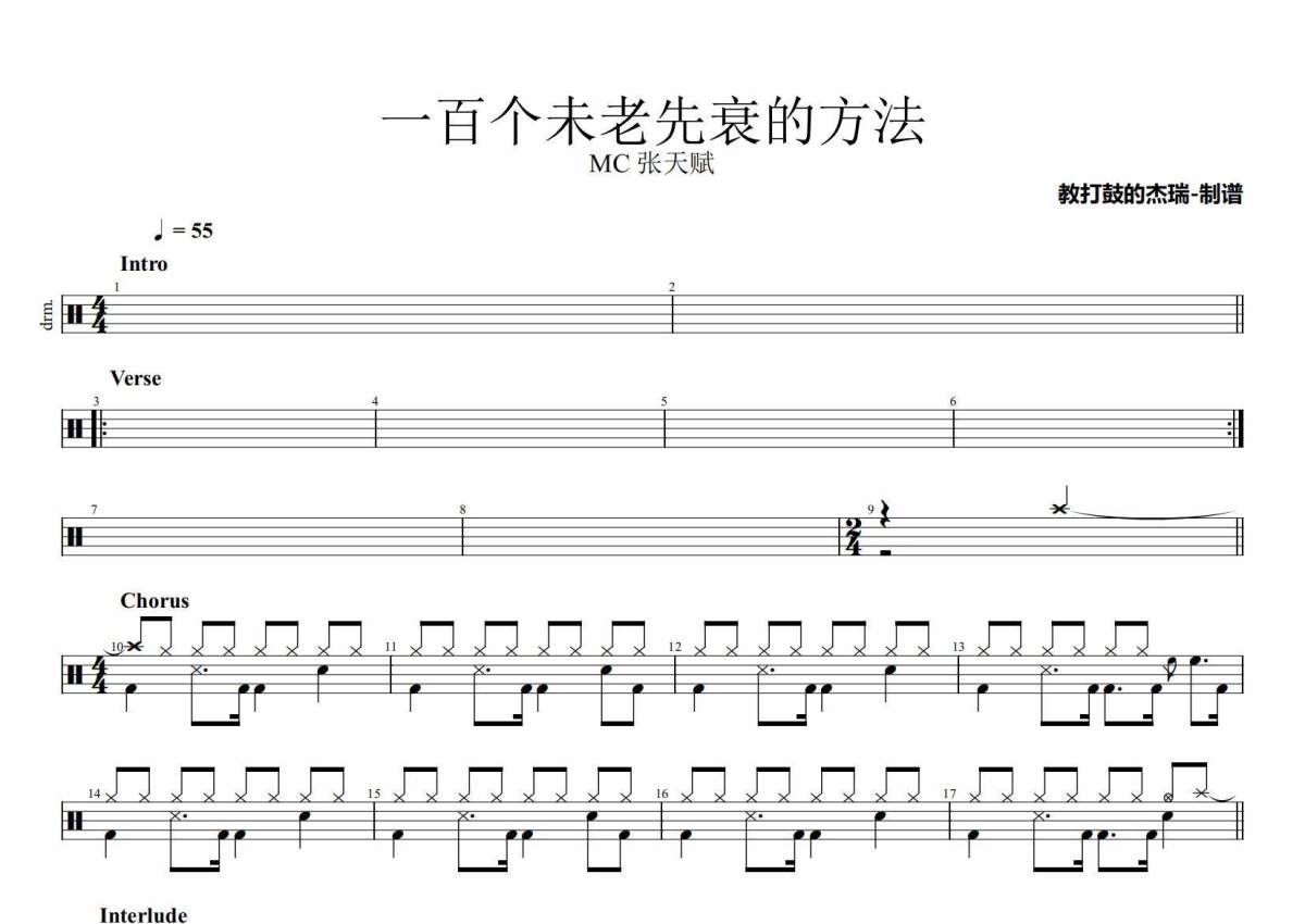 MC 张天赋《一百个未老先衰的方法》架子鼓谱