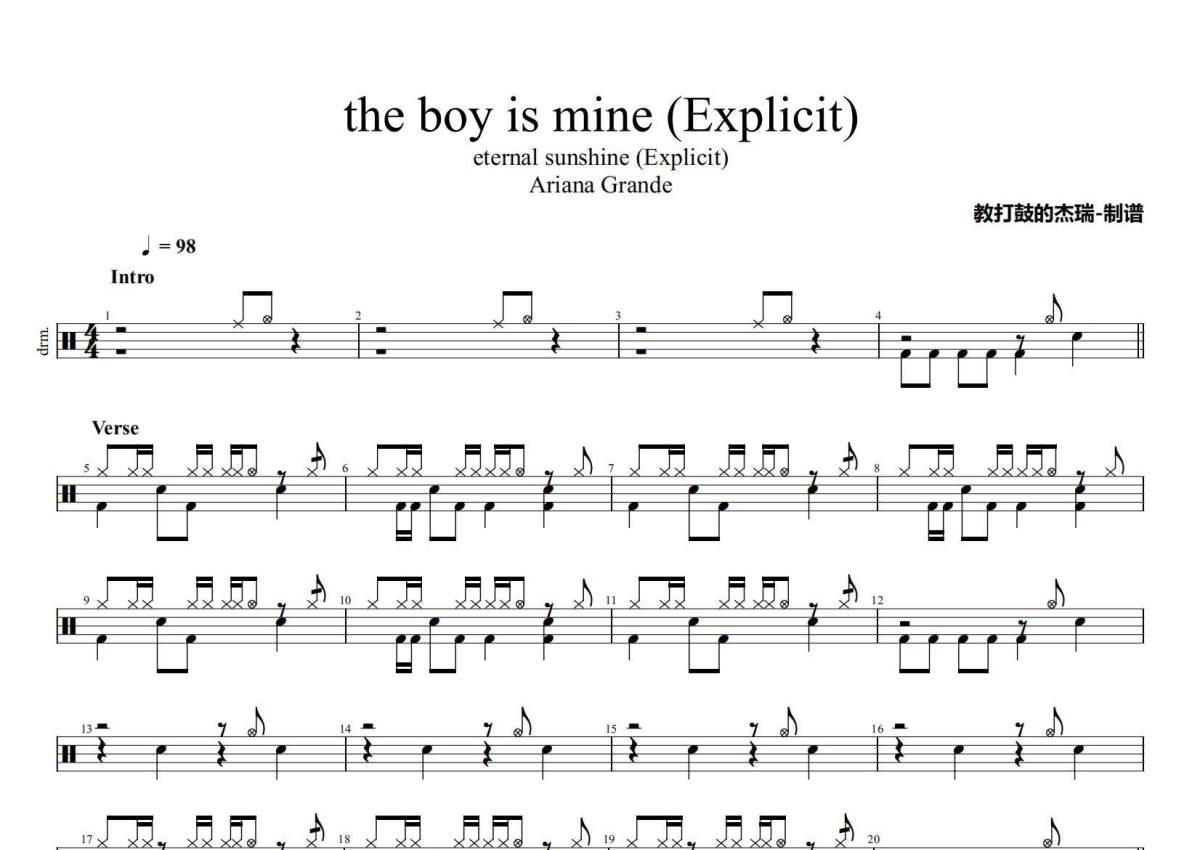 Ariana Grande《the boy is mine (Explicit)》架子鼓谱