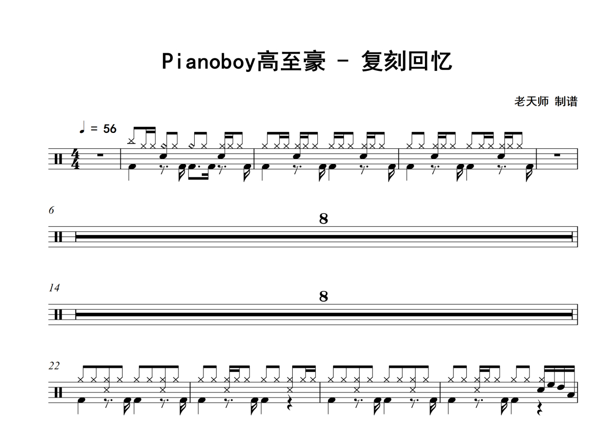 Pianoboy高至豪《复刻回忆》架子鼓谱