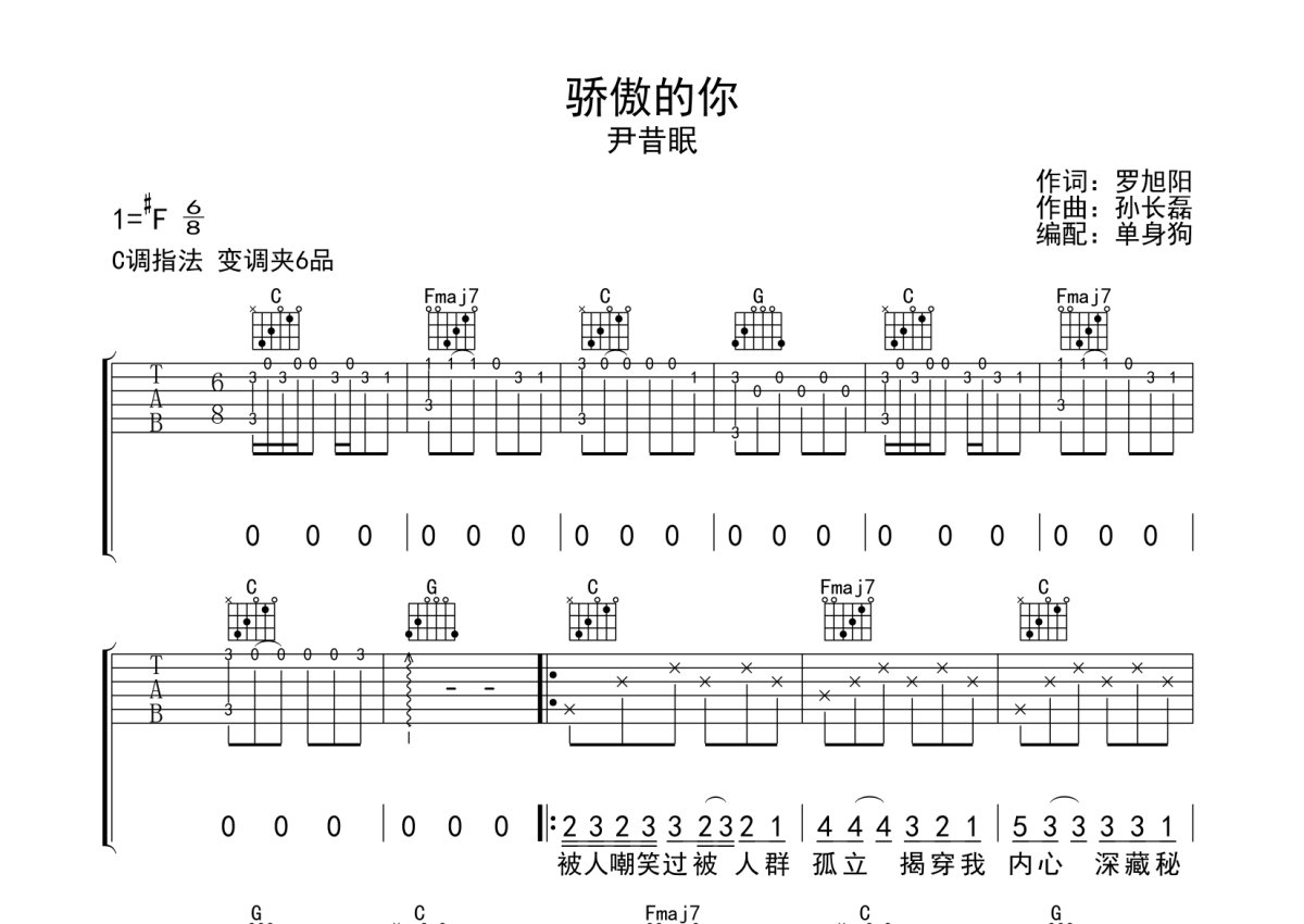尹昔眠《骄傲的你》吉他谱 - C调弹唱六线谱