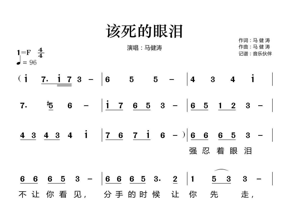 该死的眼泪简谱 - 马健涛演唱