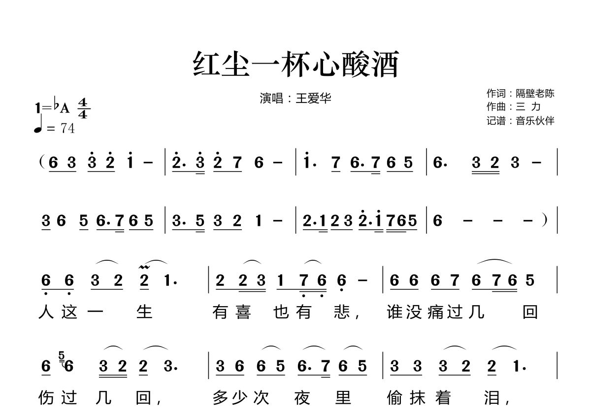 红尘一杯心酸酒简谱 - 王爱华演唱