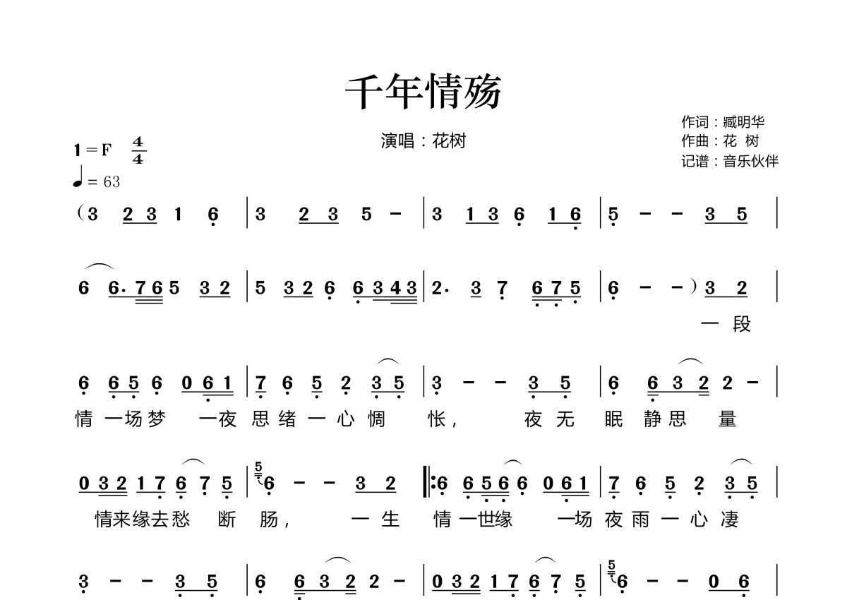 千年情殇简谱 - 花树演唱