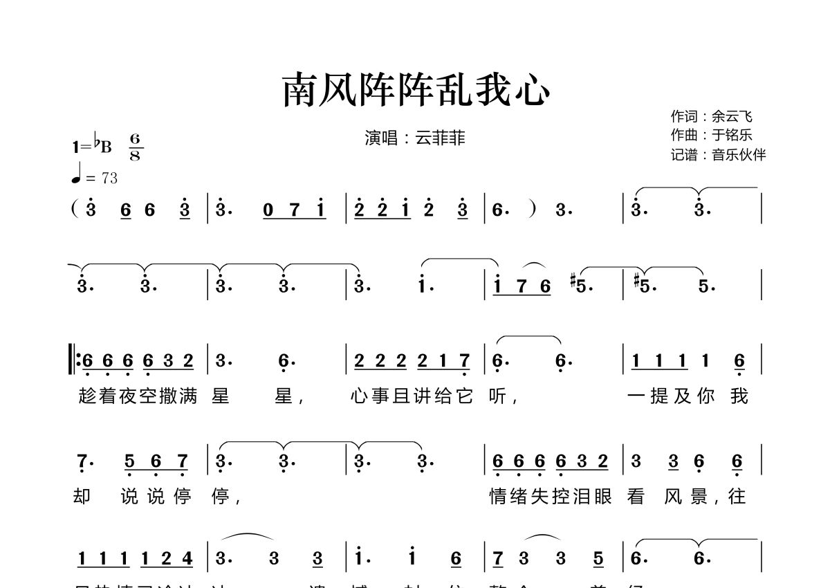 南风阵阵乱我心简谱 - 云菲菲演唱