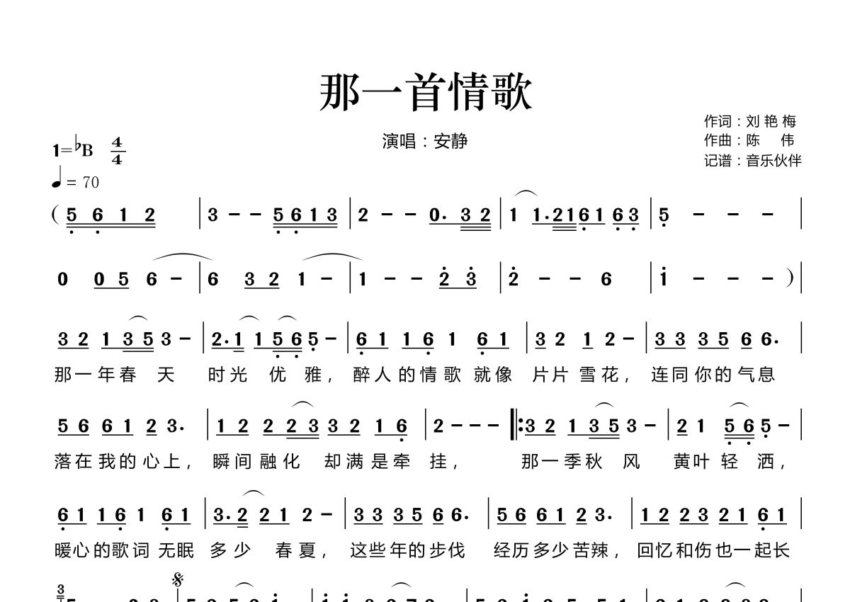 《那一首情歌》是安静演唱的一首歌曲,这份简谱共有一张高清图谱,图谱由 @音乐伙伴 编配上传。
