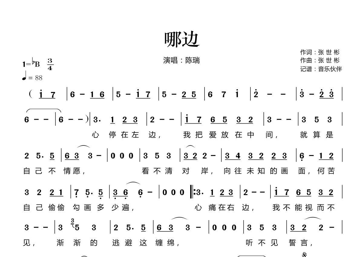 《哪边》是陈瑞演唱的一首歌曲,这份简谱共有一张高清图谱,图谱由 @音乐伙伴 编配上传。