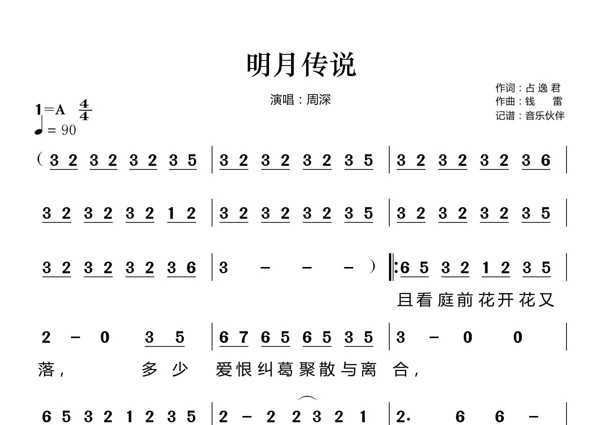 《明月传说》是周深演唱的一首歌曲,这份简谱共有两张高清图谱,图谱由 @音乐伙伴 编配上传。
