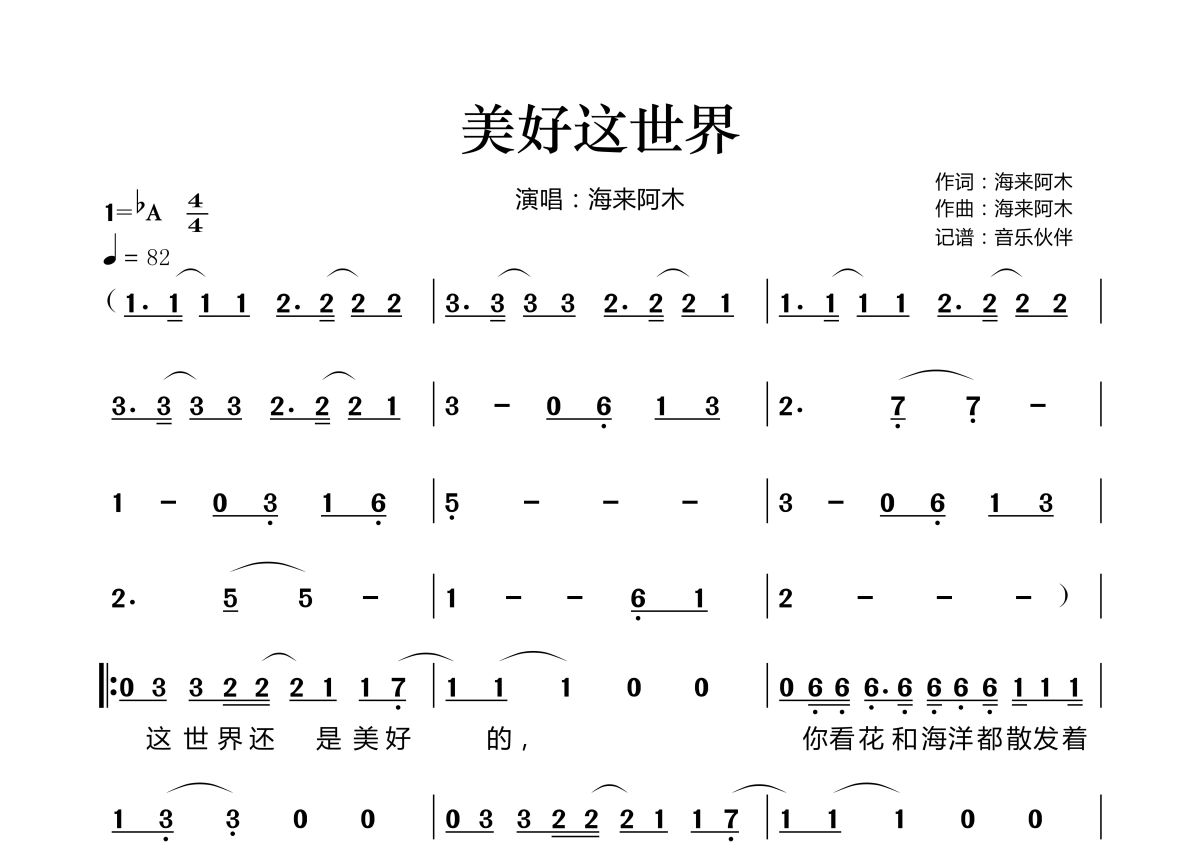 美好这世界简谱 - 海来阿木演唱