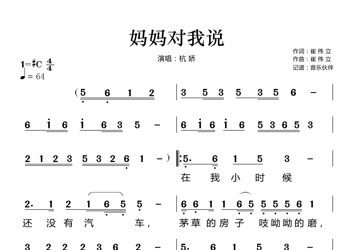 《妈妈对我说》是杭娇演唱的一首歌曲,这份简谱共有两张高清图谱,图谱由 @音乐伙伴 编配上传。