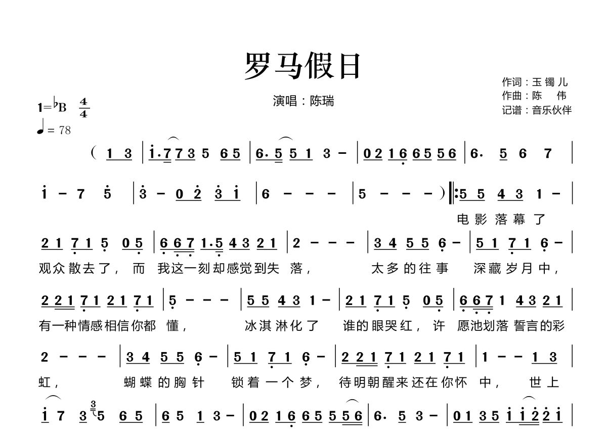 《罗马假日》是陈瑞演唱的一首歌曲,这份简谱共有一张高清图谱,图谱由 @音乐伙伴 编配上传。
