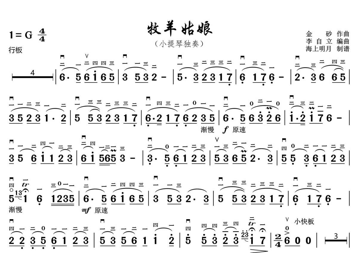 金砂《牧羊姑娘》小提琴谱