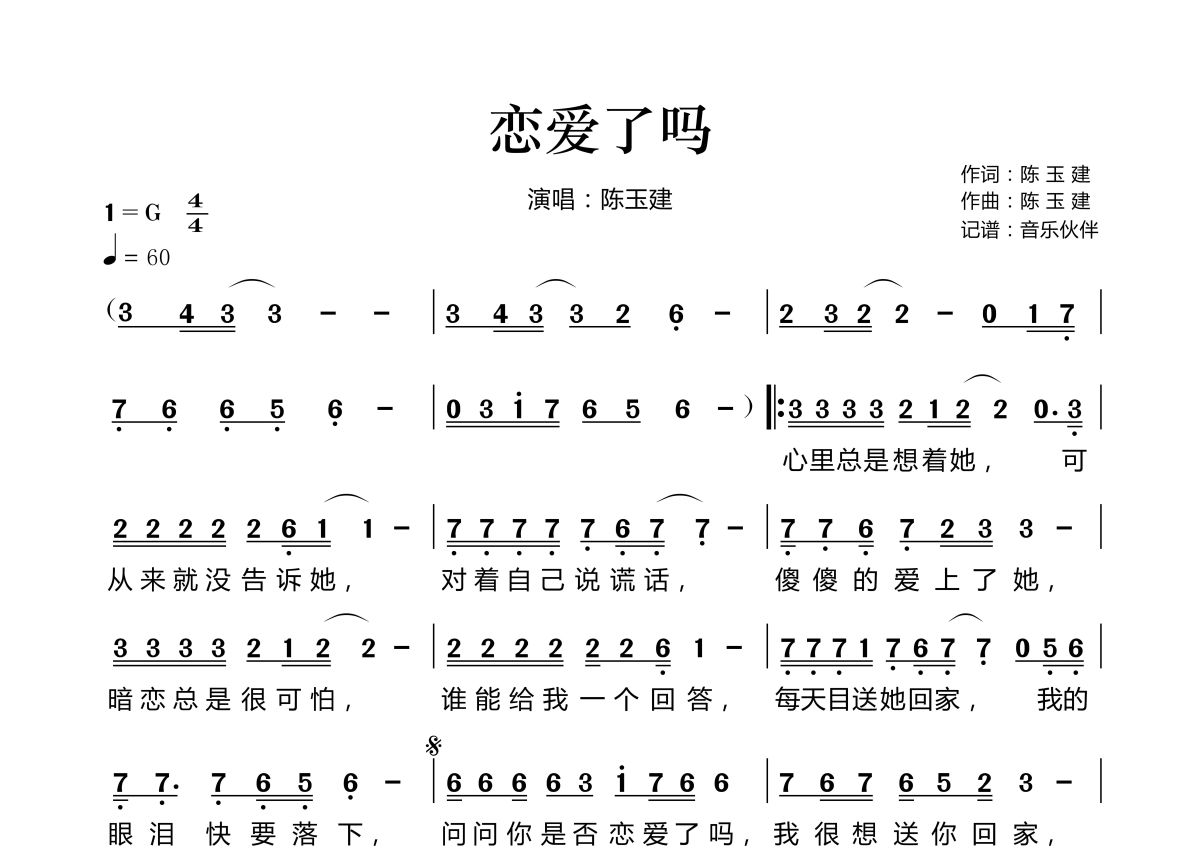 恋爱了吗简谱 - 陈玉建演唱