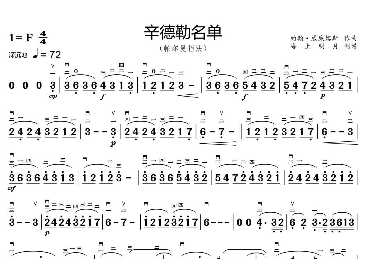 《辛德勒的名单》是帕尔曼演奏版演唱的一首歌曲,简谱版,这份小提琴谱共有一张高清图谱,图谱由 @海上明月 编配上传。