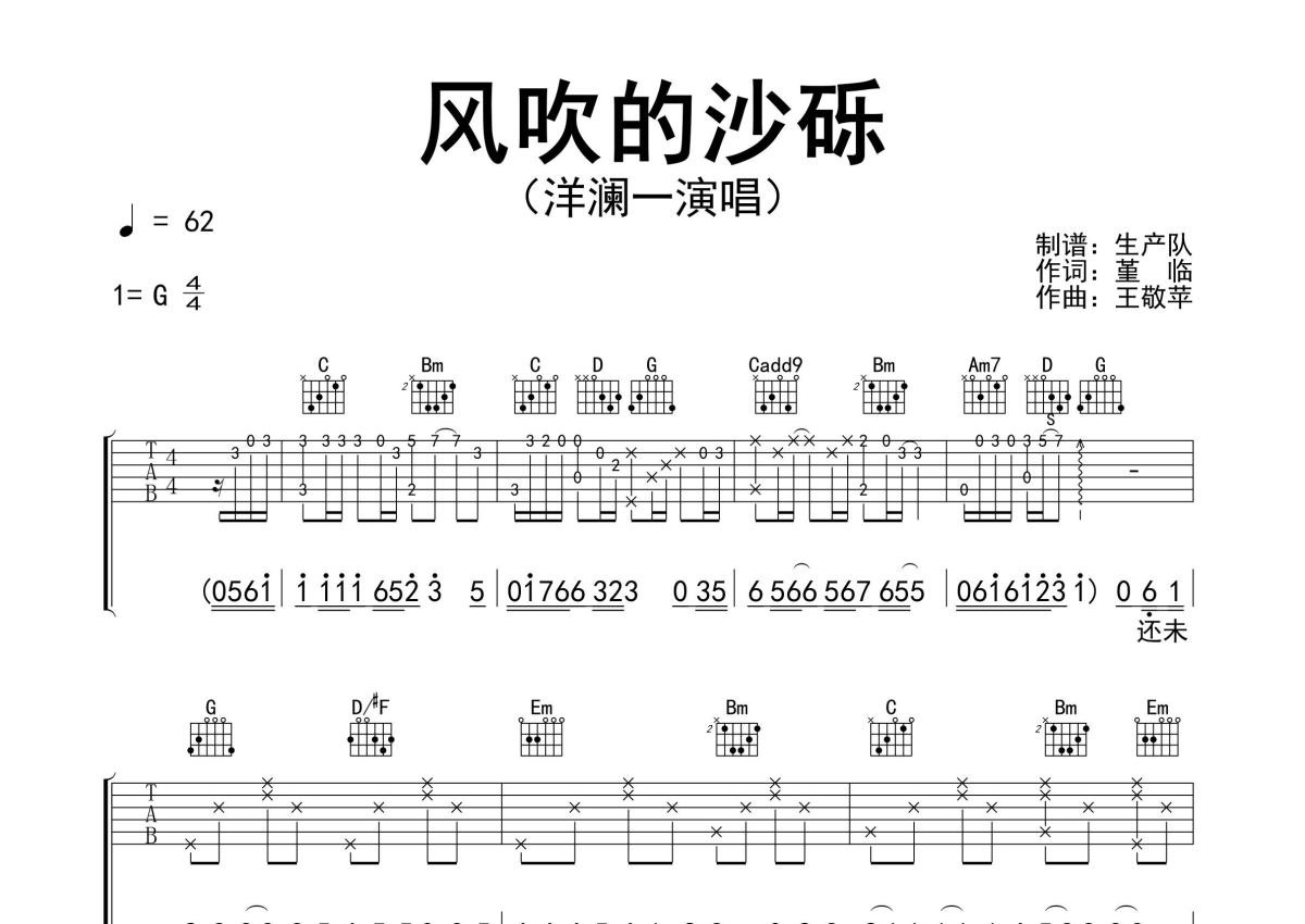 洋澜一《风吹的沙砾》吉他谱 - G调弹唱六线谱 - 精编完美版
