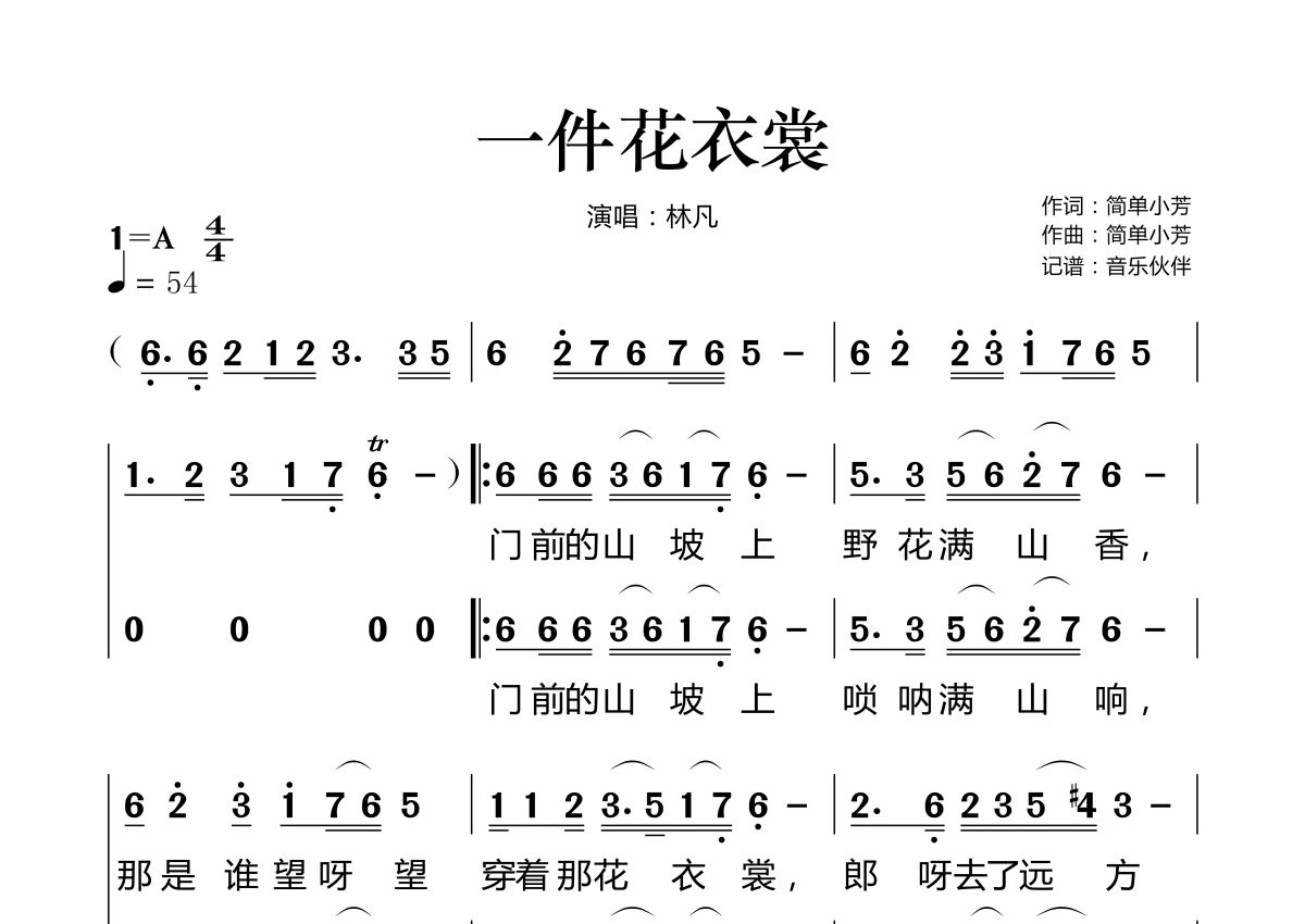 《一件花衣裳》是林凡演唱的一首歌曲,这份简谱共有两张高清图谱,图谱由 @音乐伙伴 编配上传。