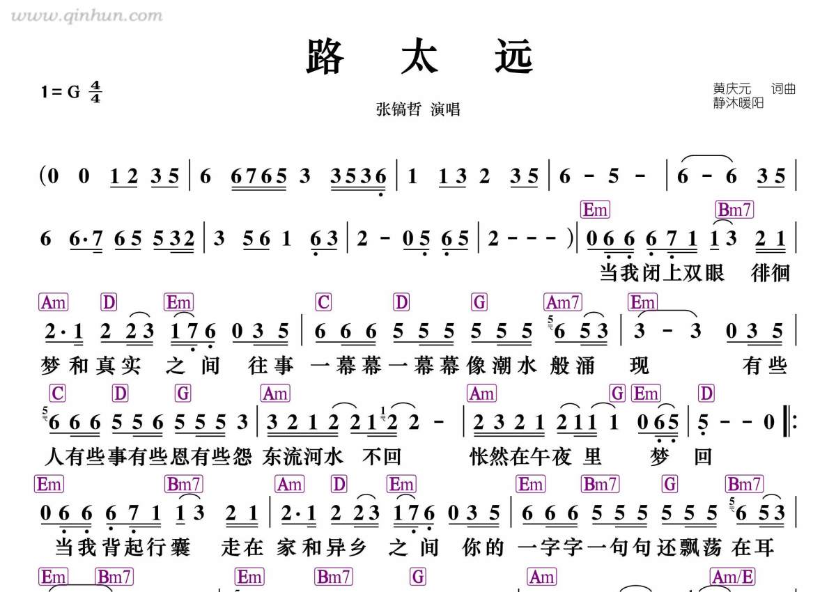 《路太远》是张镐哲演唱的一首歌曲,和弦谱,拍号为4/4拍,这份简谱共有一张高清图谱,图谱由 @静沐暖阳 编配上传。