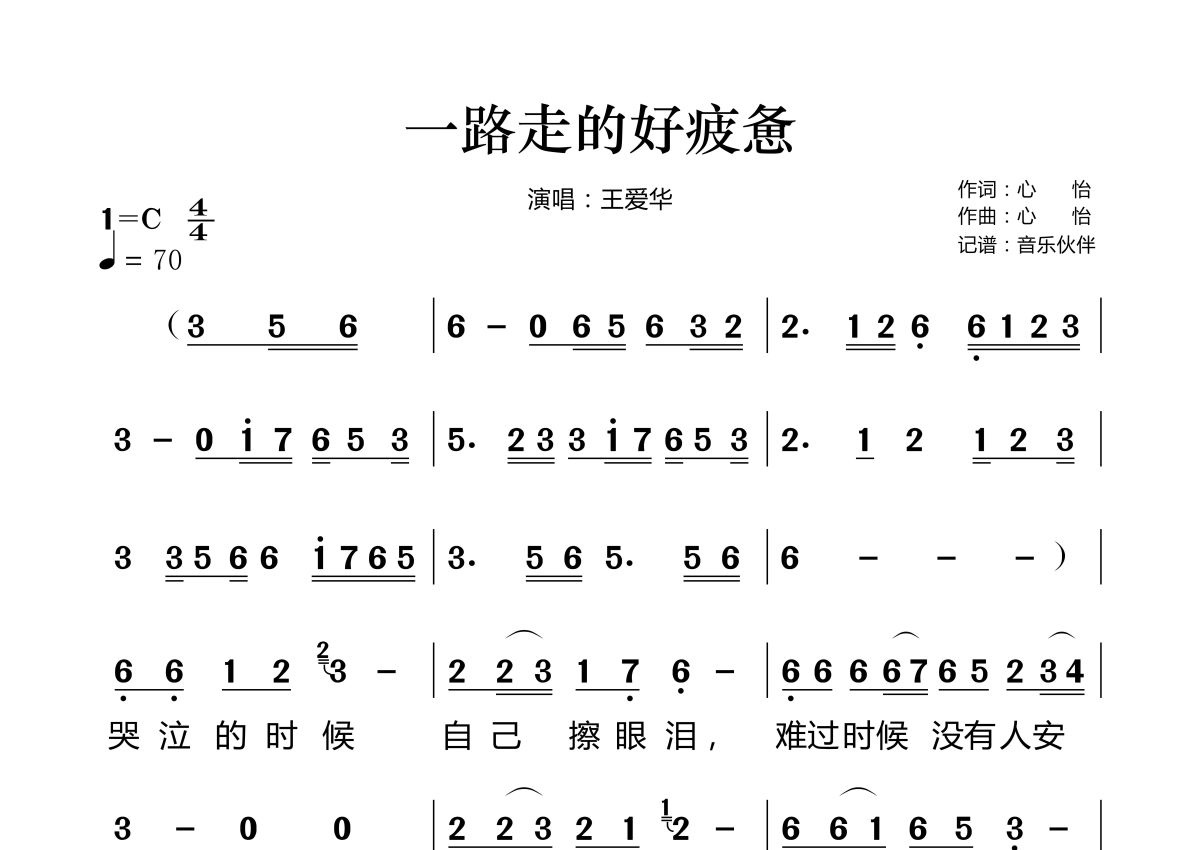 一路走的好疲惫简谱 - 王爱华演唱