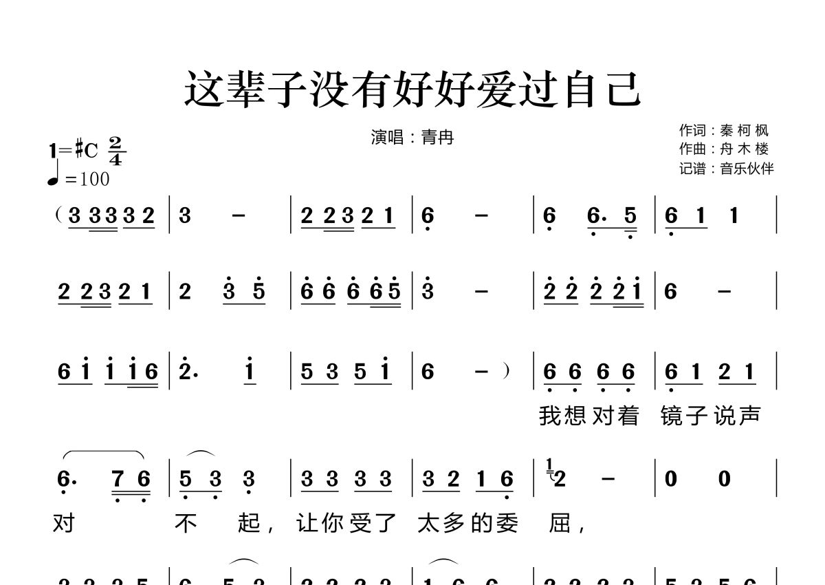 这辈子没有好好爱过自己简谱 - 青冉演唱