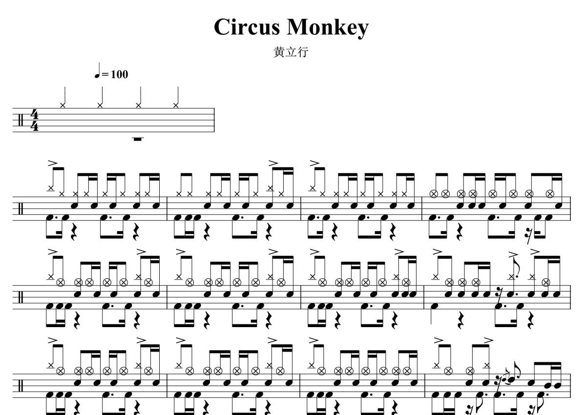 黄立行《Circus Monkey》架子鼓谱