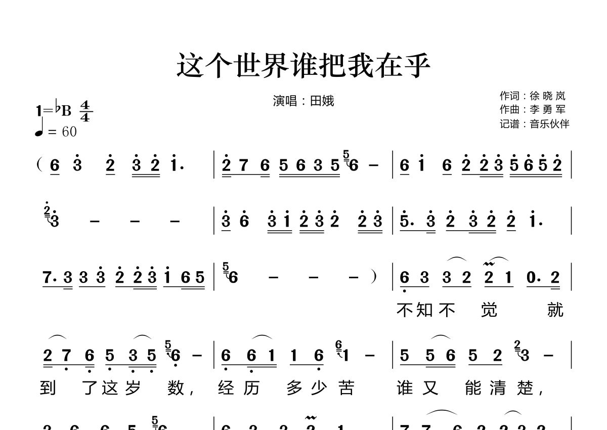 这个世界谁把我在乎简谱 - 田娥演唱