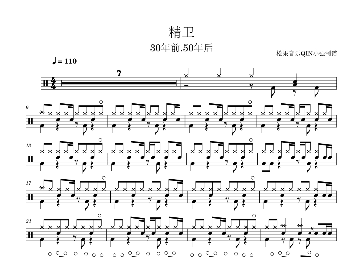 《精卫》是30年前,50年后演唱的一首歌曲,拍号为4/4拍,这份架子鼓谱共有两张高清图谱,图谱由 @松果音乐QIN小强 编配上传,图谱使用五线谱编配,使用这份精卫架子鼓谱,你将能够轻松地敲打出这首30年前,50年后的精卫,快来尝试吧。《精卫》是由30年前,50年后填词,作曲并演唱的歌曲,收录于专辑《丧失年轻,勿失年华》中,于2021年12月24日上线发行。由网易云音乐和中国数字音乐基地共同打造出品。
