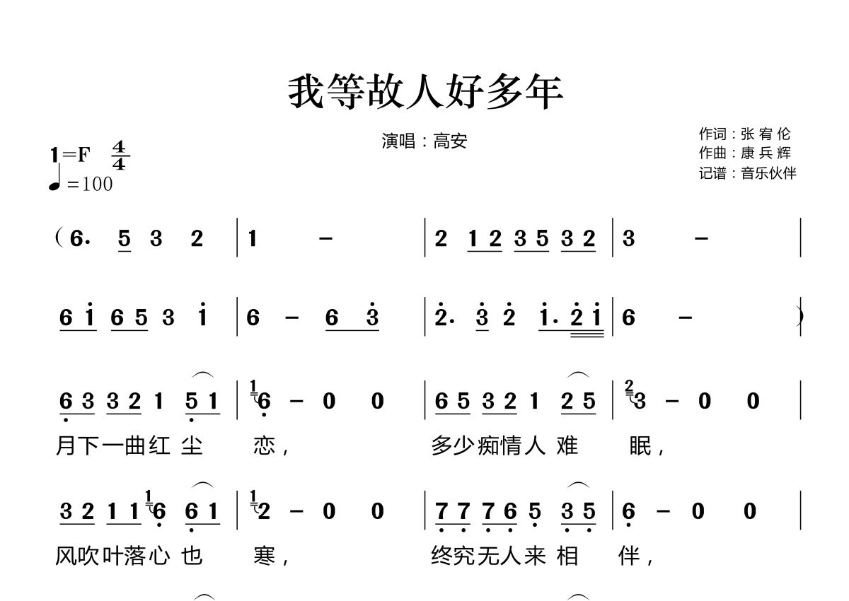 我等故人好多年简谱 - 高安演唱