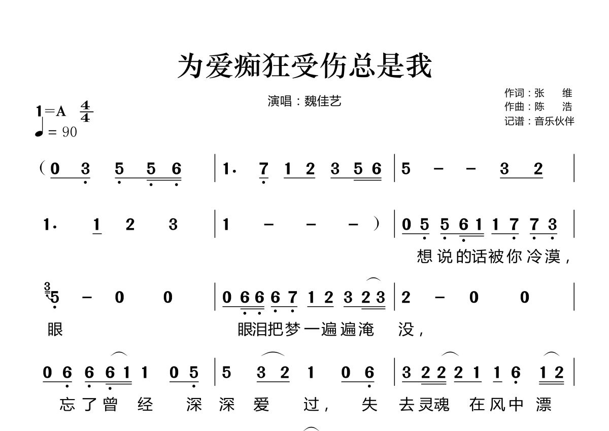 为爱痴狂受伤总是我简谱 - 魏佳艺演唱