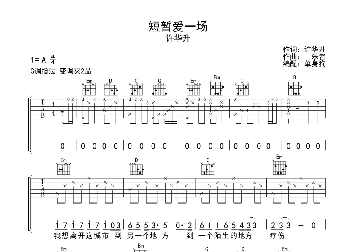 许华升《短暂爱一场》吉他谱 - G调弹唱六线谱