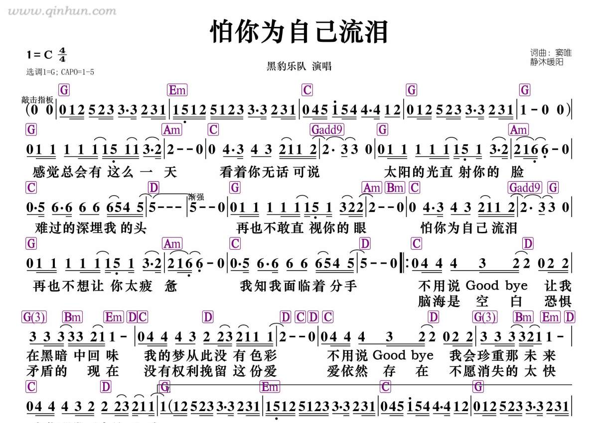 《怕你为自己流泪》是黑豹乐队演唱的一首歌曲,和弦谱,拍号为4/4拍,这份简谱共有一张高清图谱,图谱由 @静沐暖阳 编配上传。