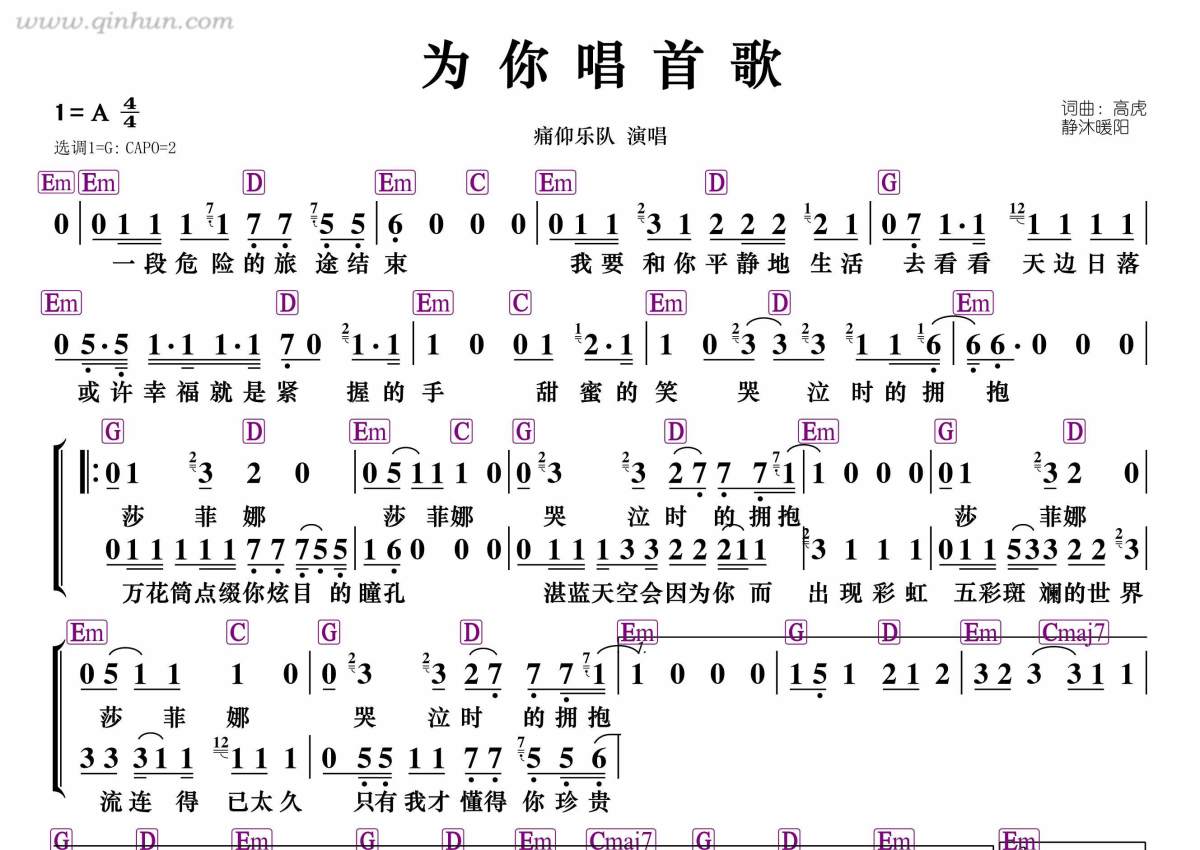 痛仰乐队《为你唱首歌》简谱 - 和弦谱