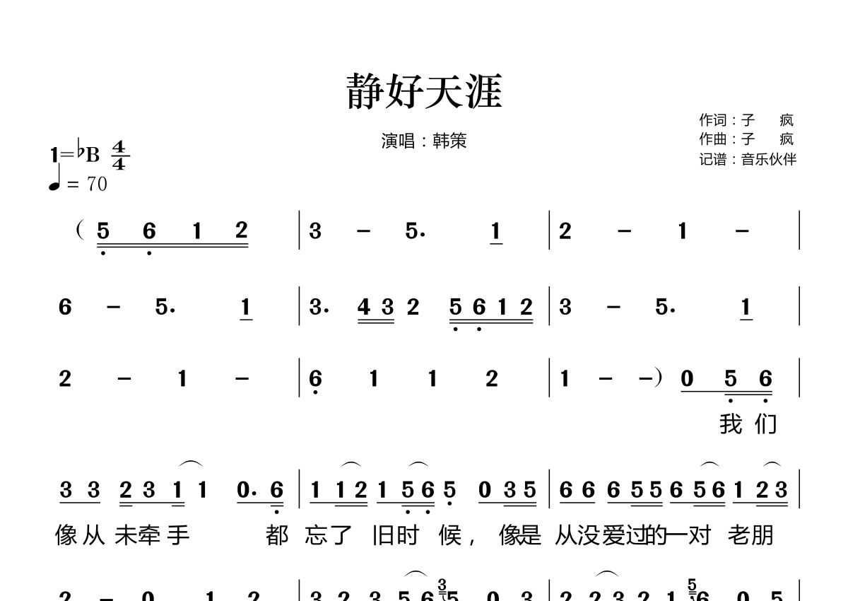 静好天涯简谱 - 韩策演唱