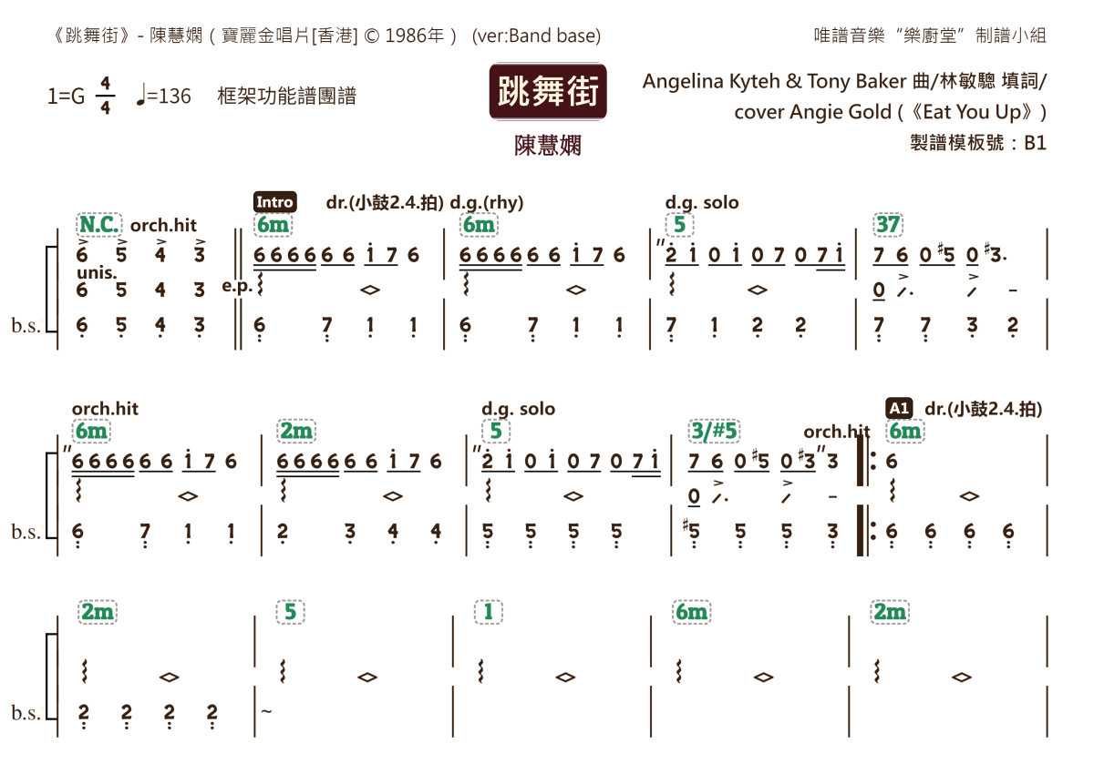 跳舞街乐队总谱 - 陈慧娴演唱 - 框架功能谱团谱